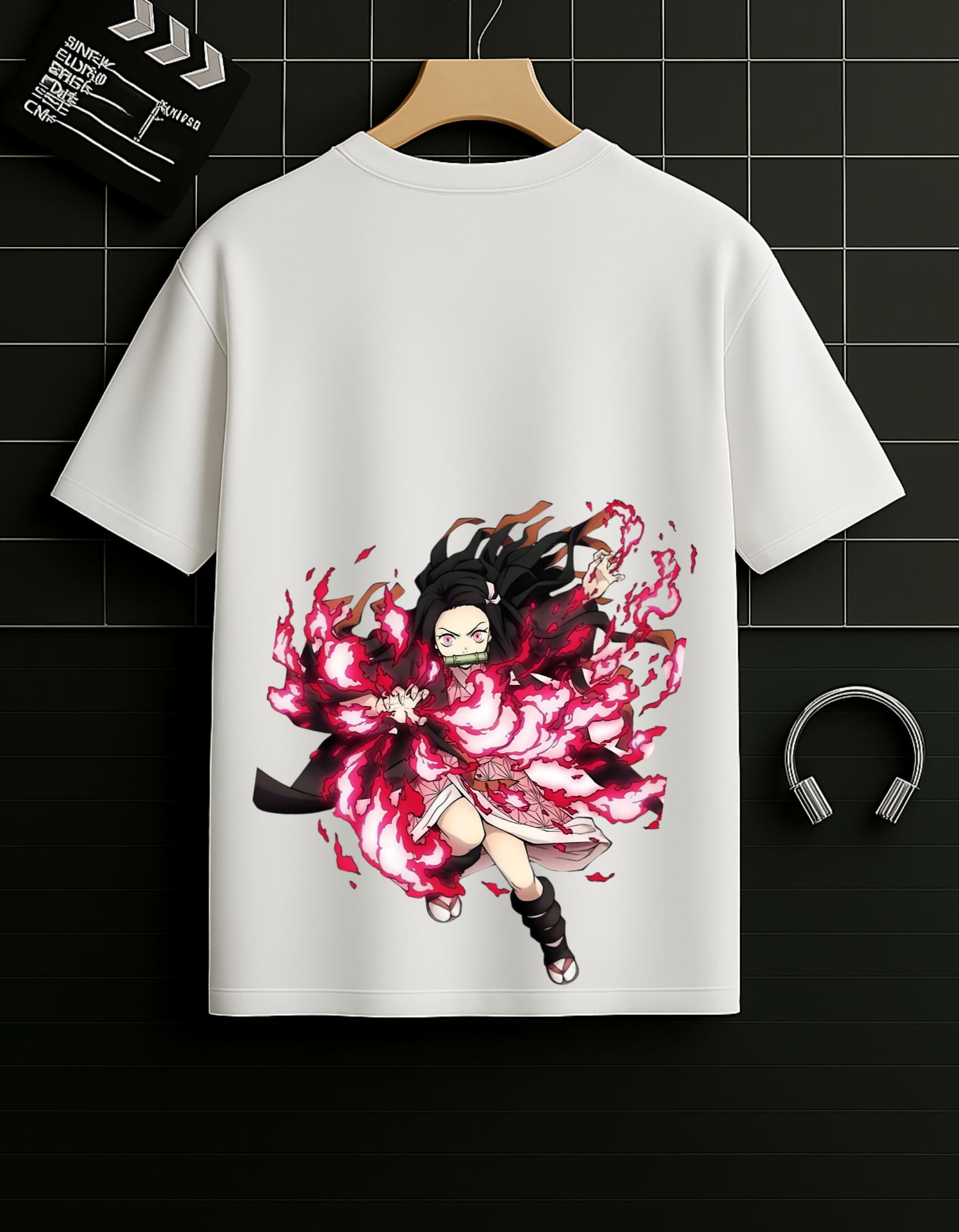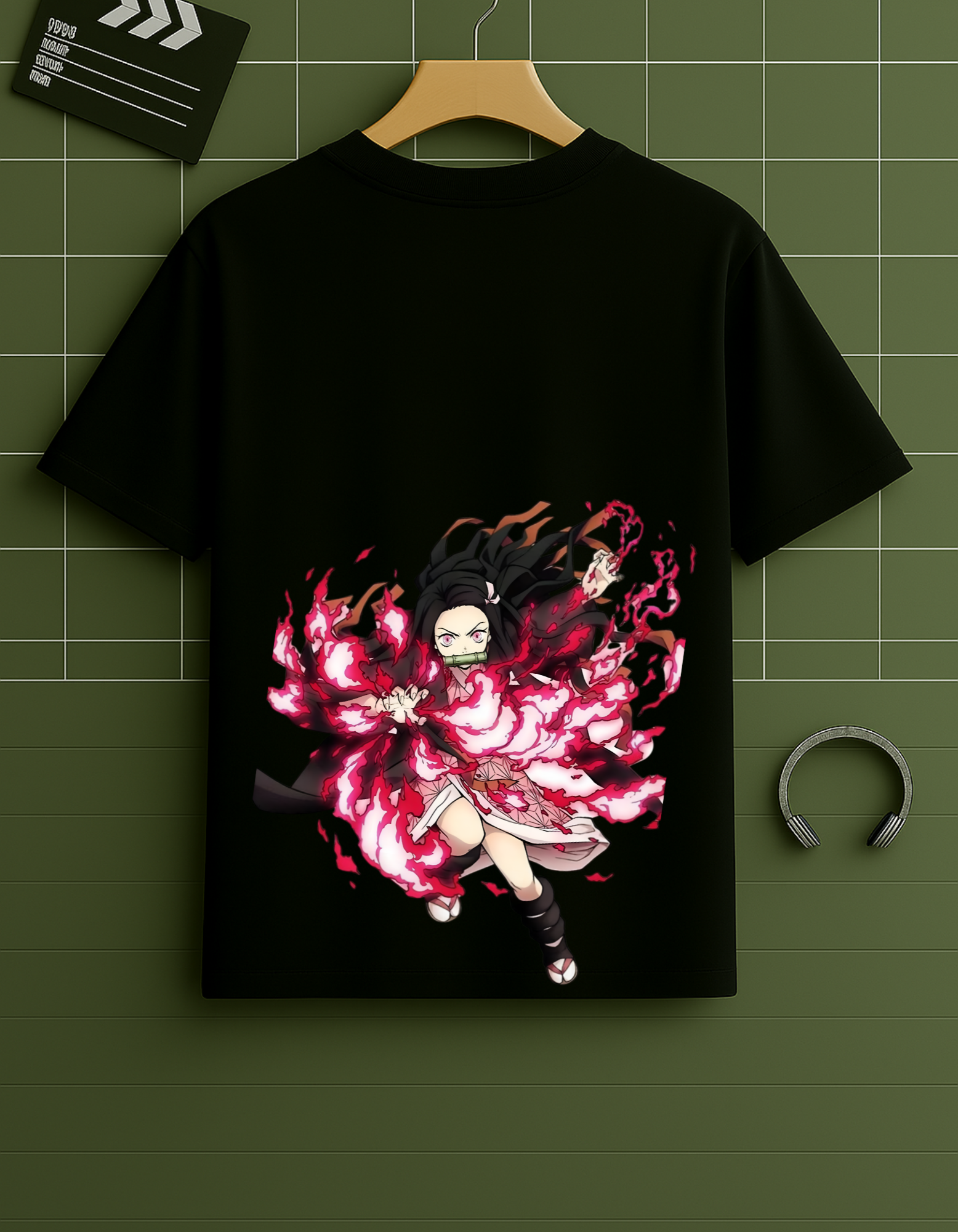 Nezuko Kamado Flame Aura Anime Graphic Tee – Oversized Fit (Unisex) -